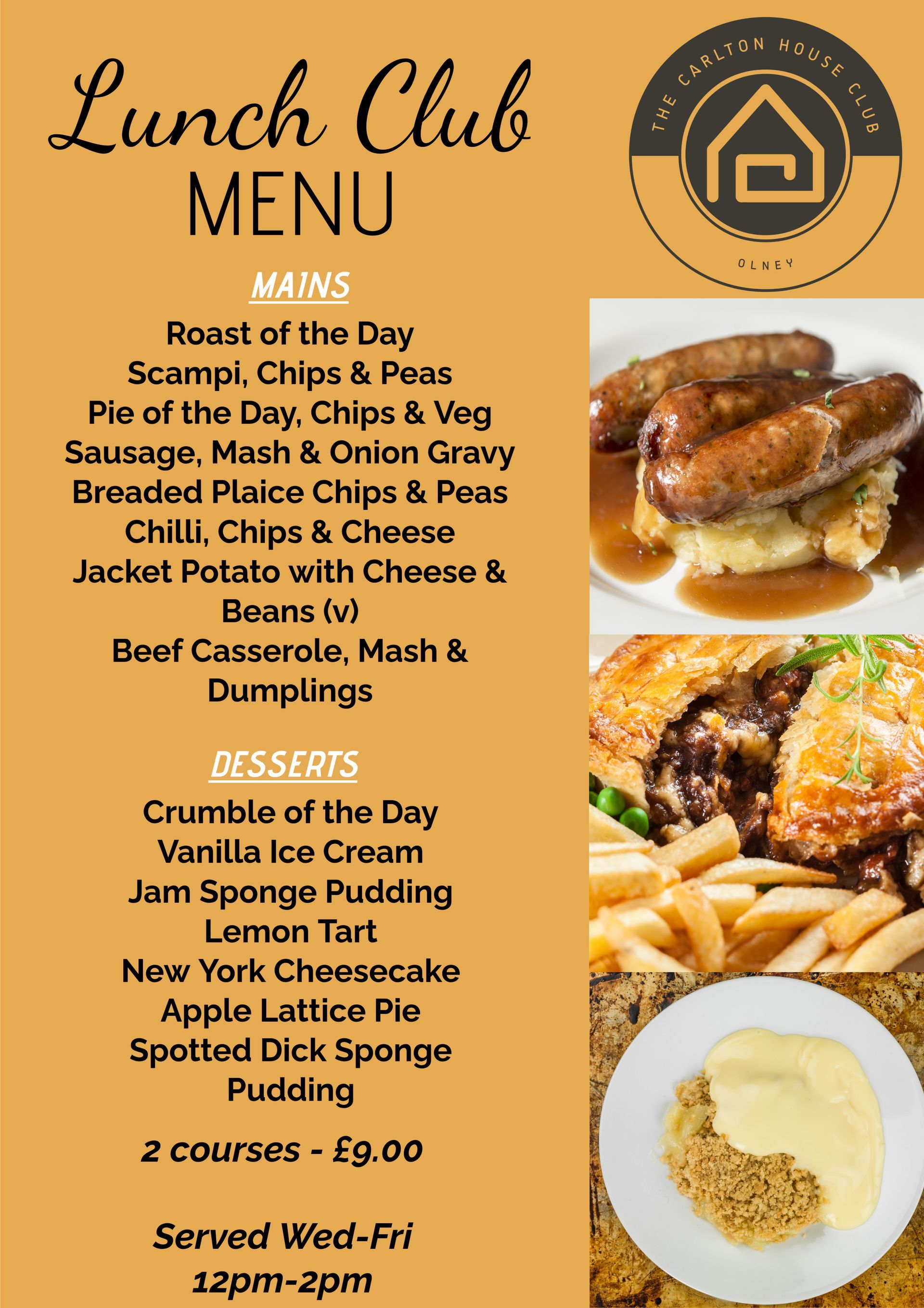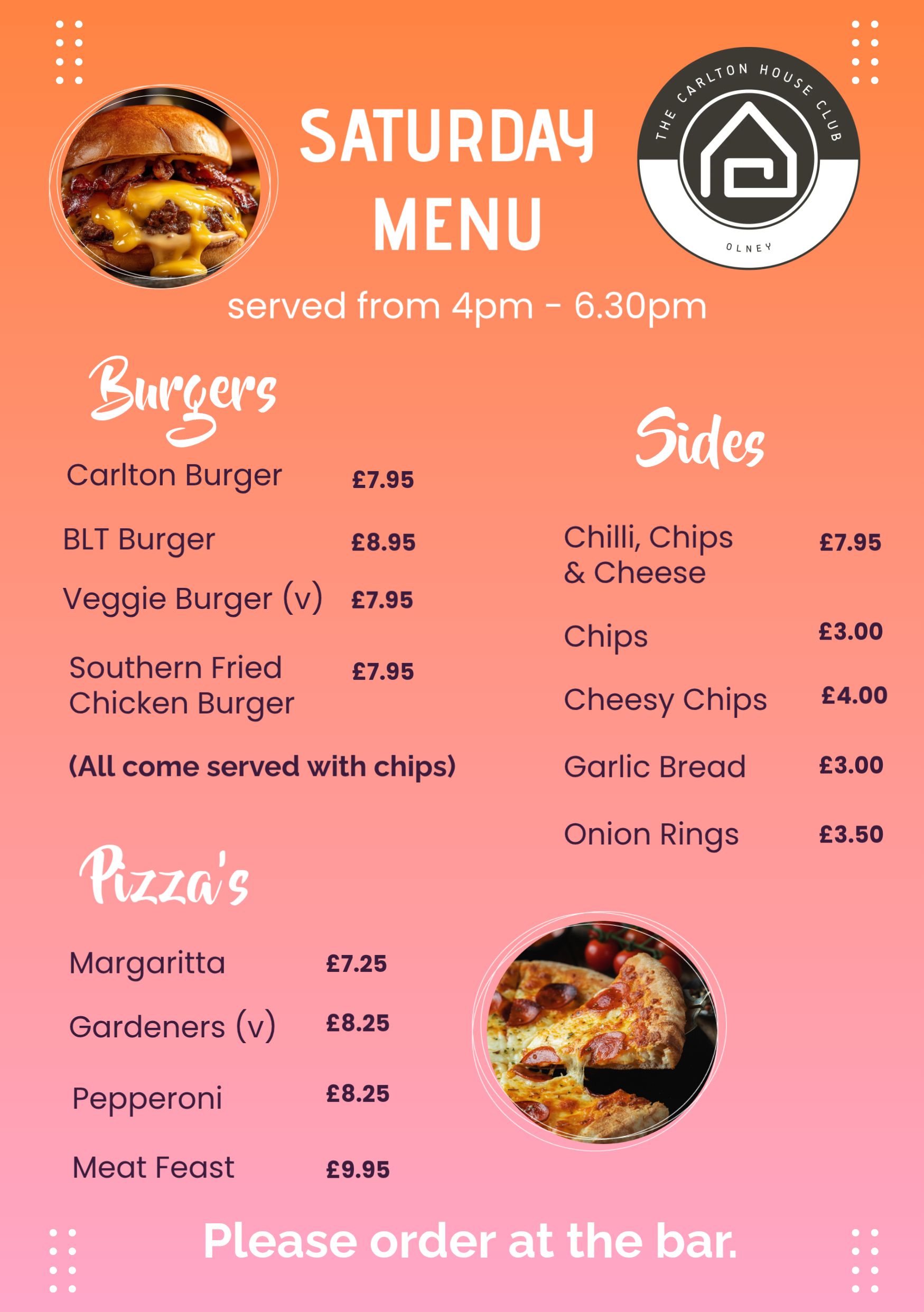 In addition to the usual pub classics, we also have a carvery on Sundays, priced at £8.95 for adults, and £5.95 for children. This is served from noon until 2.30 pm. We pride ourselves on our affordable prices and delicious food. If you have any specific needs or requests, we would be more than happy to discuss your ideas and alter our menu.